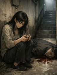 Bỗng nhiên có người từ tầng trên lăn xuống, rơi ngay bên chân tôi.