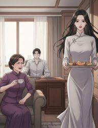Bà đặt mạnh tách trà xuống, ánh mắt như vừa nhìn thấy điều gì đó không thể tin nổi.